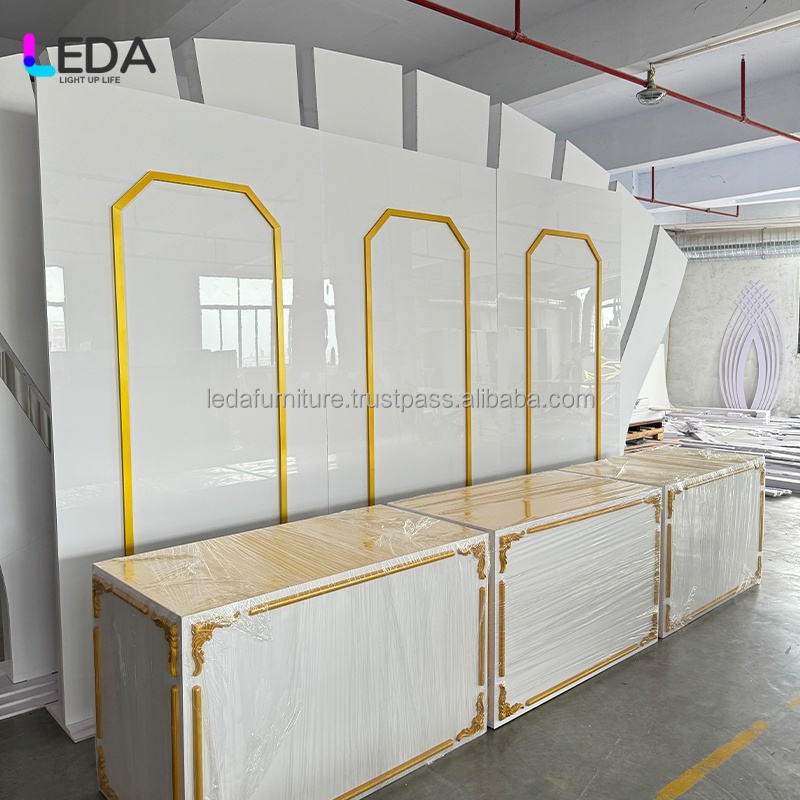 LEDA Gold Framed Romantic White Wedding Supplies Backdrop Wedding Decoration for Wedding Events