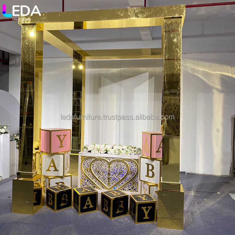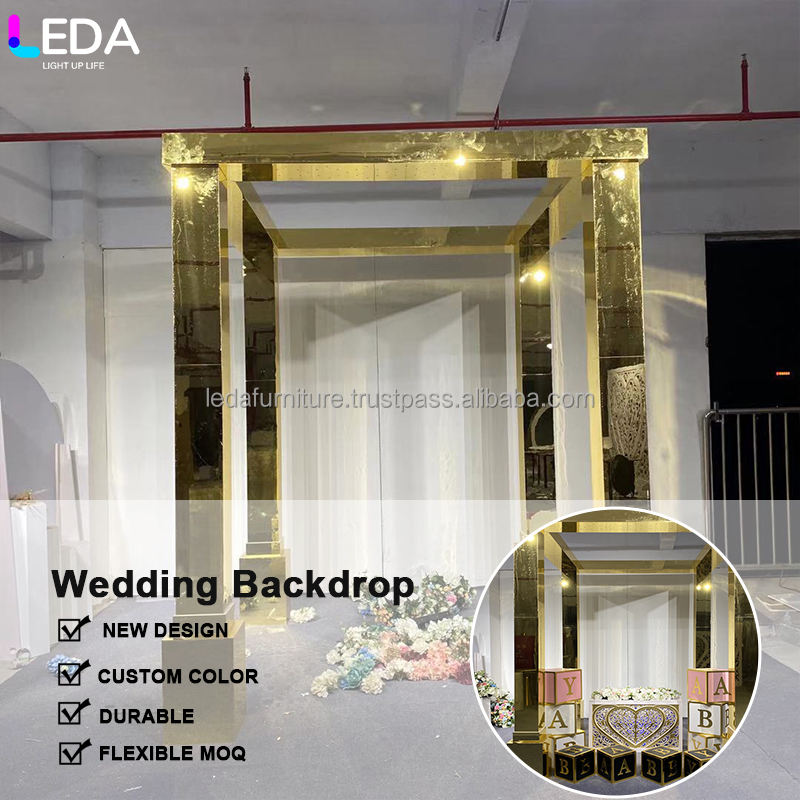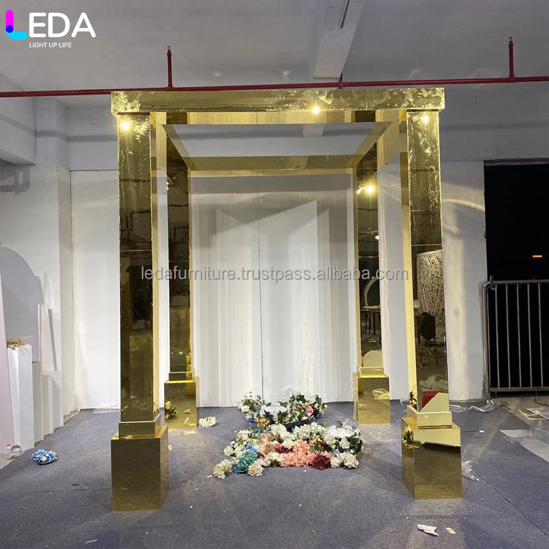 LEDA Gold Luxury Wedding Chuppah Decor Mirror Metal Stage Backdrop Stand Archway forvWedding Event