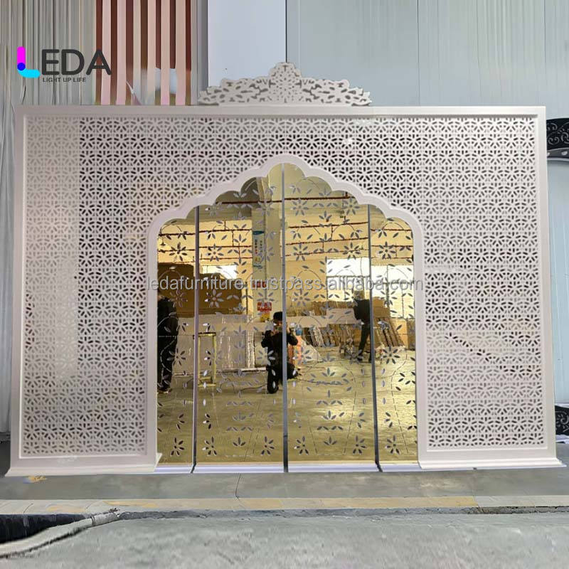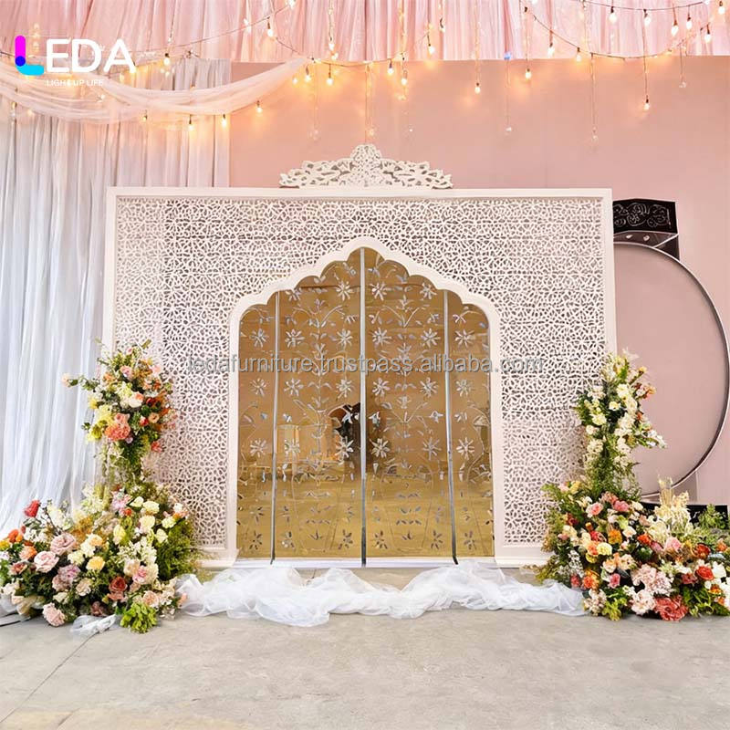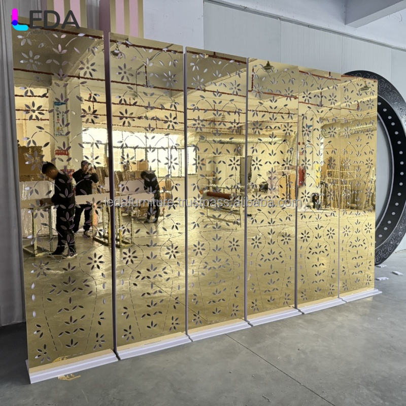 LEDA Gold and White Heavy Duty Square Shiny Acrylic Wedding Backdrop Frame Stand Wedding Backdrop Set