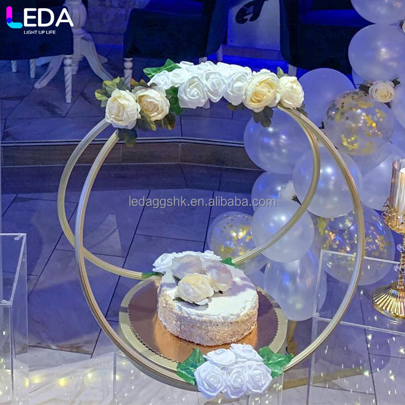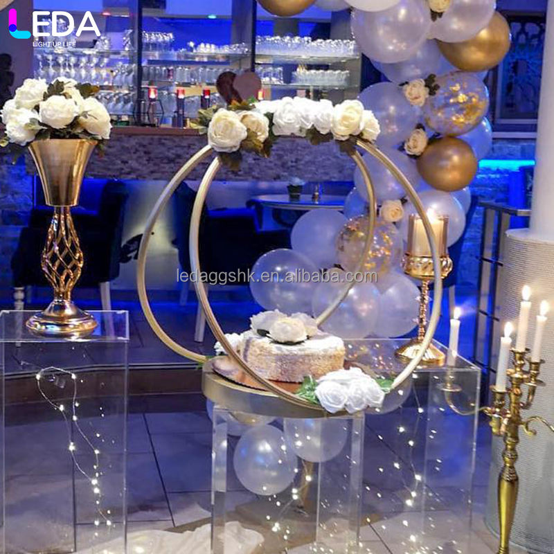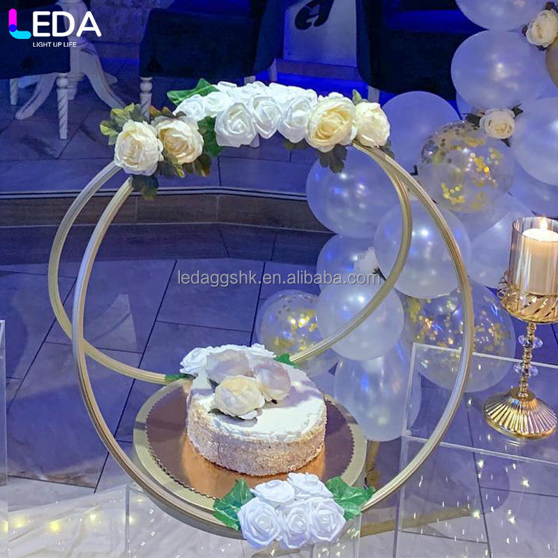 LEDA High Quality Wedding Props Golden Round Flower Stand Wedding Hotel Table Flower Ring Ceiling Decoration