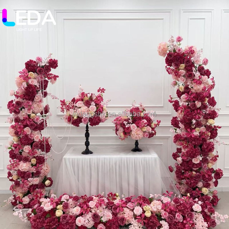 LEDA Hot Pink Artificial Rose Flower Runner Arrangement Wedding Flower Arch Horn Arch Flowers Wedding Decorations