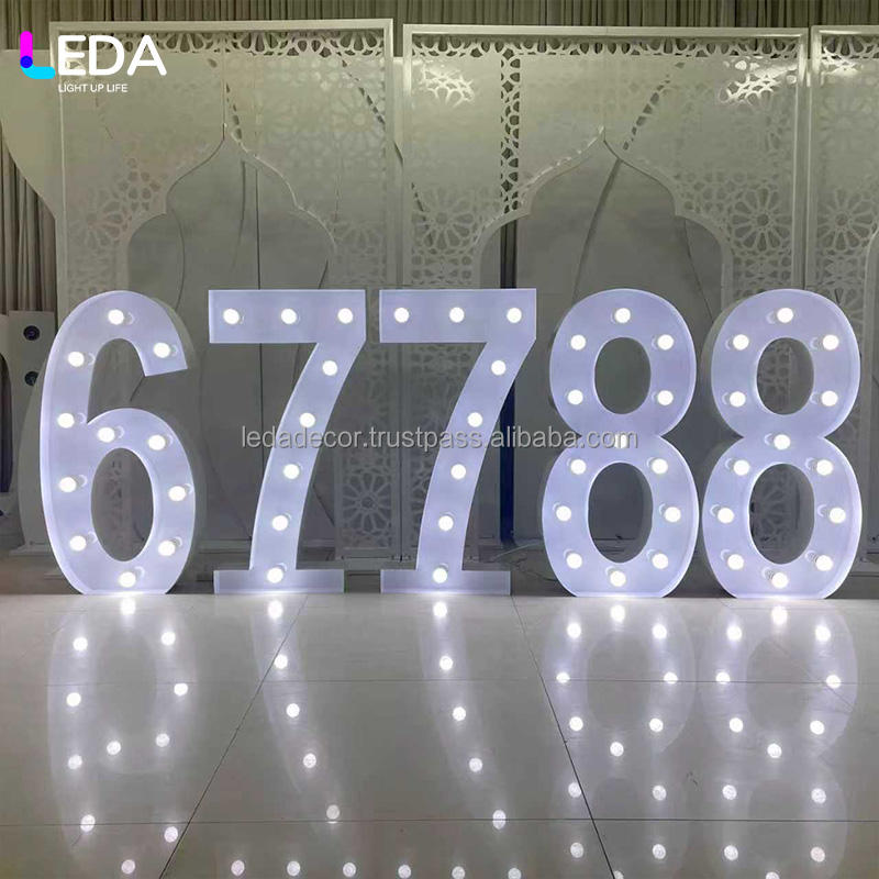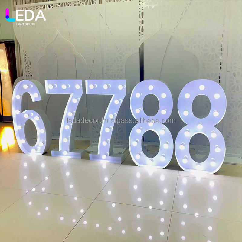 LEDA Hot Sale Modern Metal Marquee Giant Number with White LED Bulb Signs Stage for Wedding Party Events Decoration