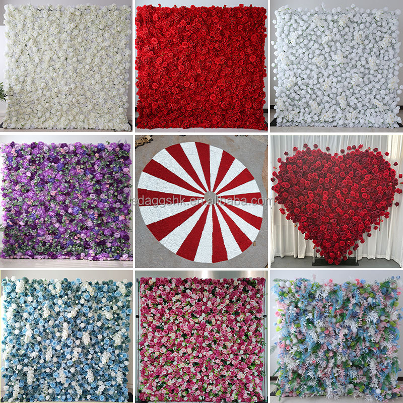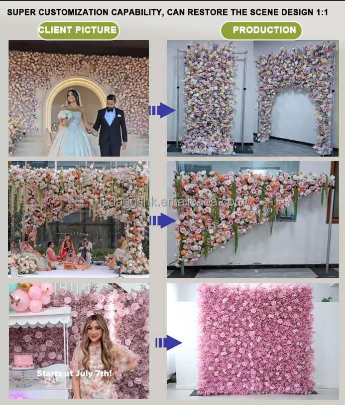 LEDA Hot Selling Green Grass Flower Wall Backdrop Roll Up Artificial Flower Wall