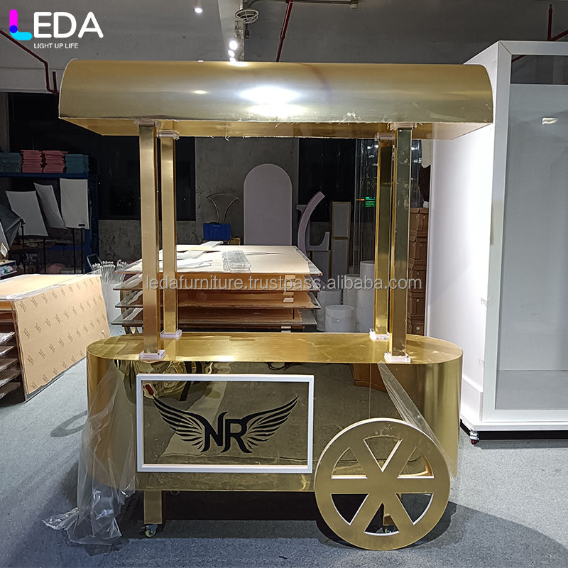 LEDA Luxurious and fashionable golden acrylic beverage bar cart candy cart wedding