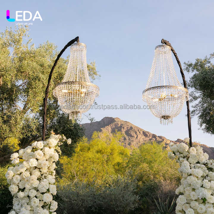 LEDA Luxury Metal Crystal Pearl Curtain Chandelier LED Ceiling Hanging Lamp for Wedding Hotel Decorations