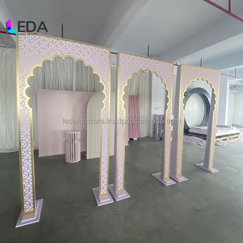 LEDA Modern Detachable New Arrival Wedding Event Supplies Customized Arch Shape Pink Acrylic Backdrop Stand for Stage Decoration