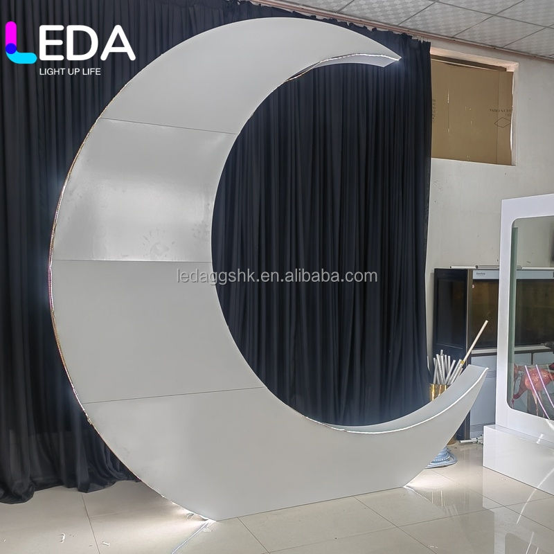 LEDA Moon Shape Metal Backdrop Custom Wedding Stage Prop for Venue Party Decoration