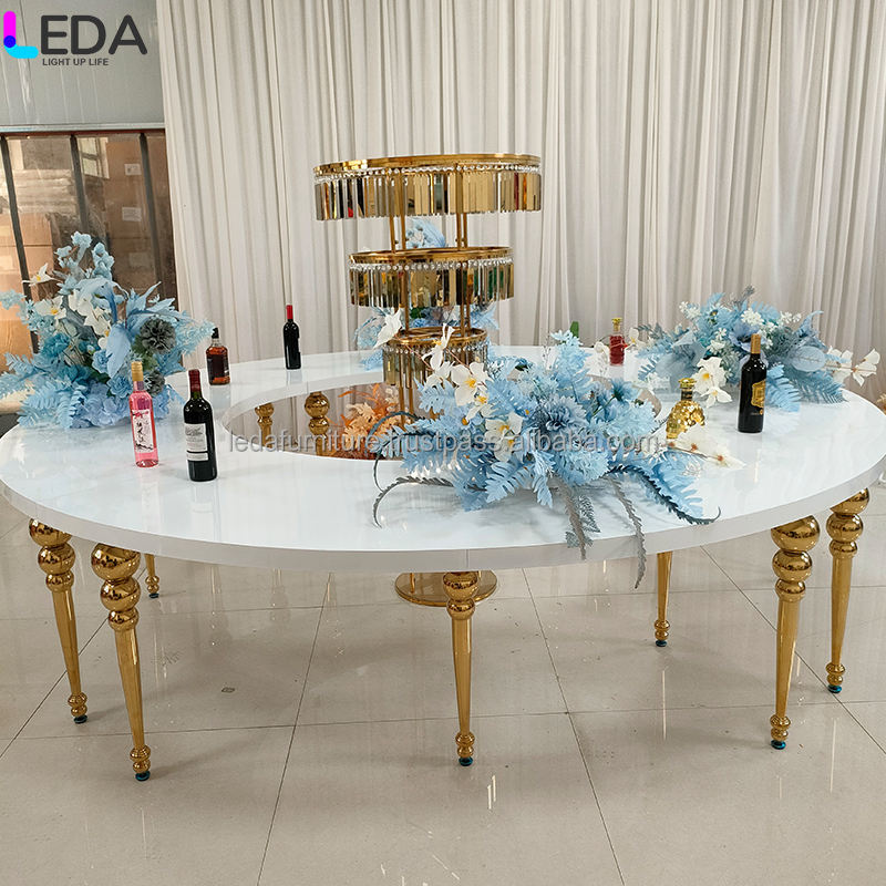 LEDA New Arrival White Round Big 3.4m Table for Wedding Event Banquet Serpentine Shape With Gold Stainless Steel Legs