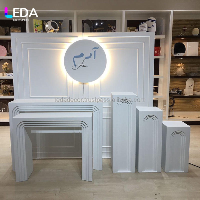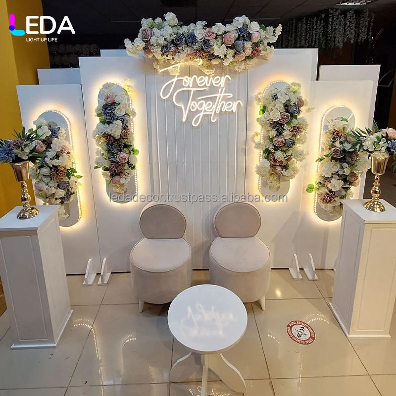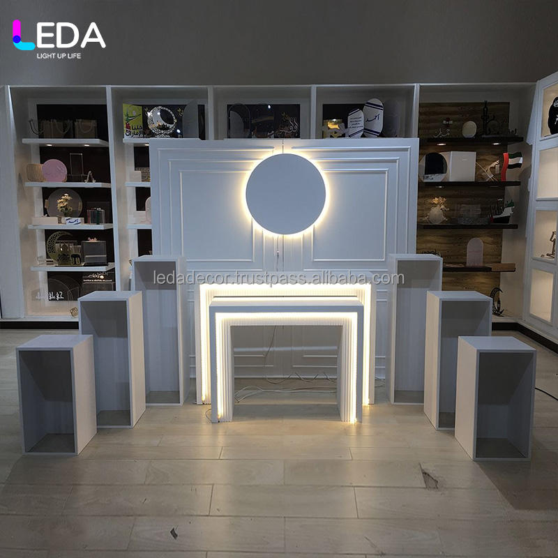 LEDA New Design Custom White Acrylic with Light Strips Backdrop Arch for Wedding Stage Events Decoration