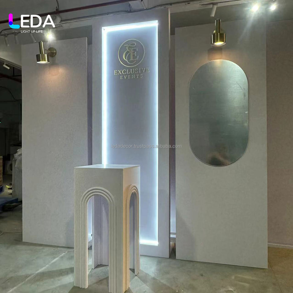 LEDA New Design LED White Acrylic Removable Luminous Backdrop Stand for Wedding Party Events Entrance Decoration