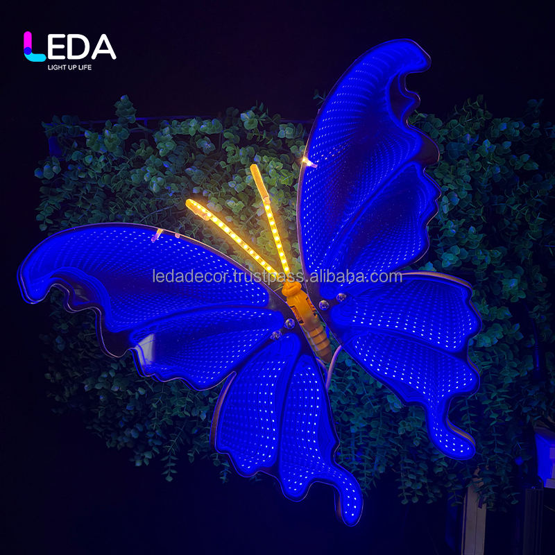 LEDA New Style Dynamic 3d Lensed Dwelling Mirror Glass Butterfly Light Waterproof AC Power Supply Light for Events Decoration