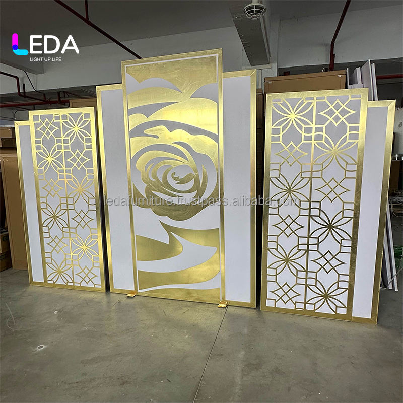 LEDA New Wedding Decor 3D Cutting Luxury Building Rose Design Back Drop Wall Decoration Wedding Stage Backdrop