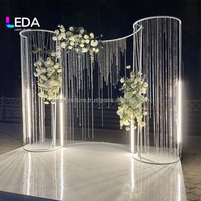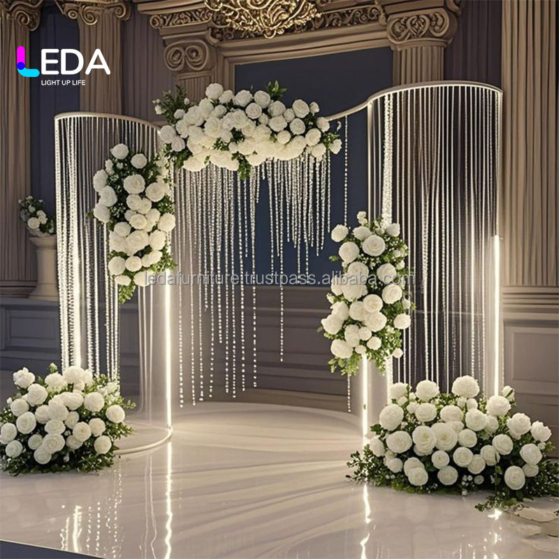 LEDA Professional Modern White Metal Wedding Arch Backdrop Stand Flower Display Curve Design Led Lights for Wedding Event