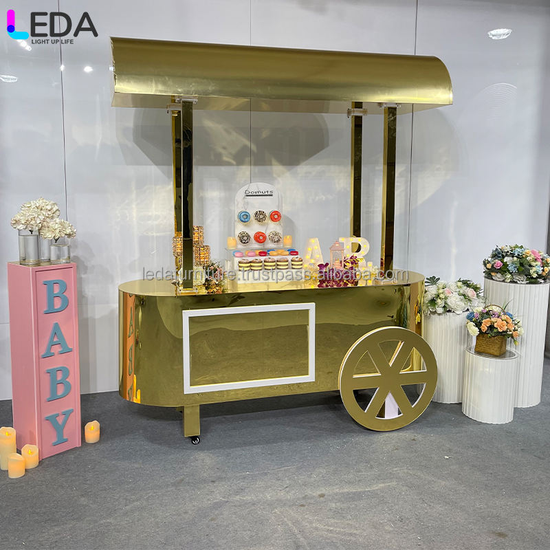 LEDA Newly designed wedding party decoration: Candy bar cart, food dessert cart, golden candy vehicle