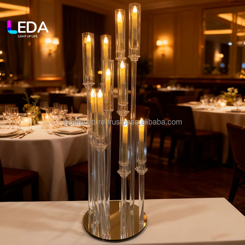 LEDA Transparent Acrylic Candle Holder Wedding Candlestick Centerpiece Candle Holder Flower Stand for Party Wedding Decoration