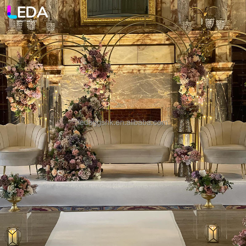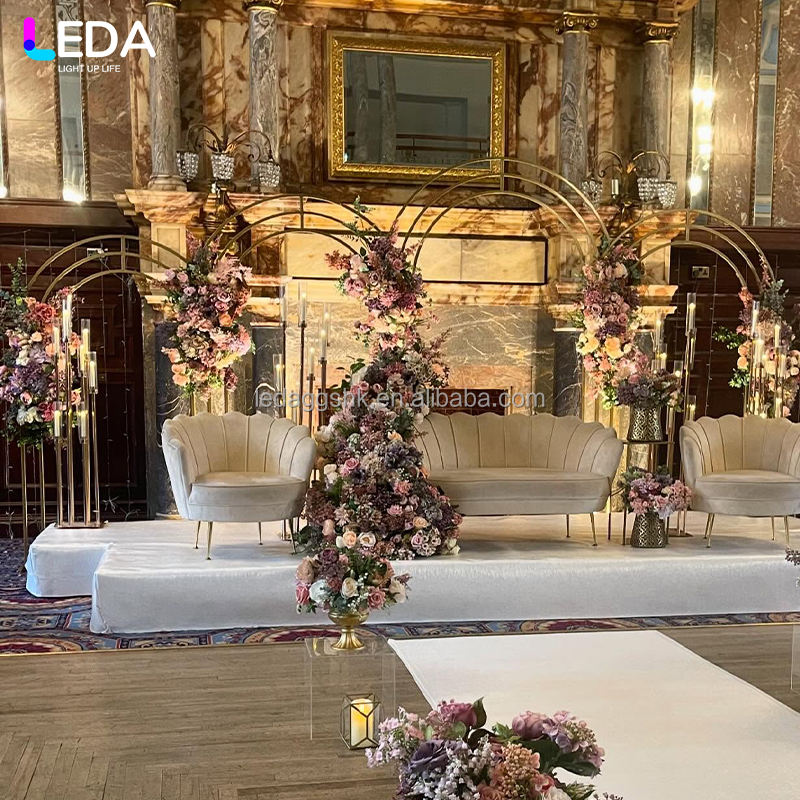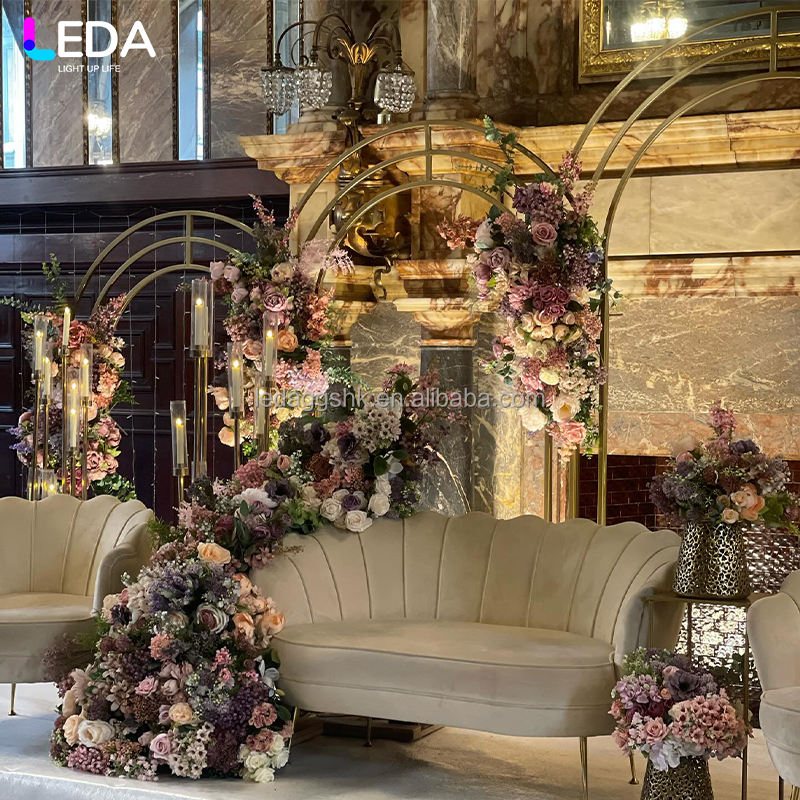 LEDA Wedding Stage Background Frame Gold Metal Wedding Arch Backdrop Artificial Flower Metal Wedding Arch Stand