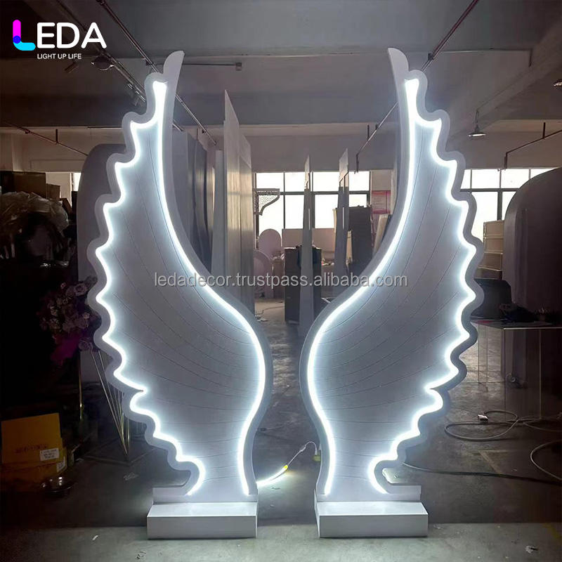 LEDA White Light LED Acrylic Angel Wings Wedding Backdrop Arch With Wings Luminous Stage Background for Wedding Party Decoration