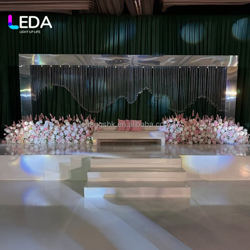 LEDA Wholesale Modern Silver Stainless Steel Arch Wedding Backdrop Stand with Bead Curtain Stage Decoration for Events
