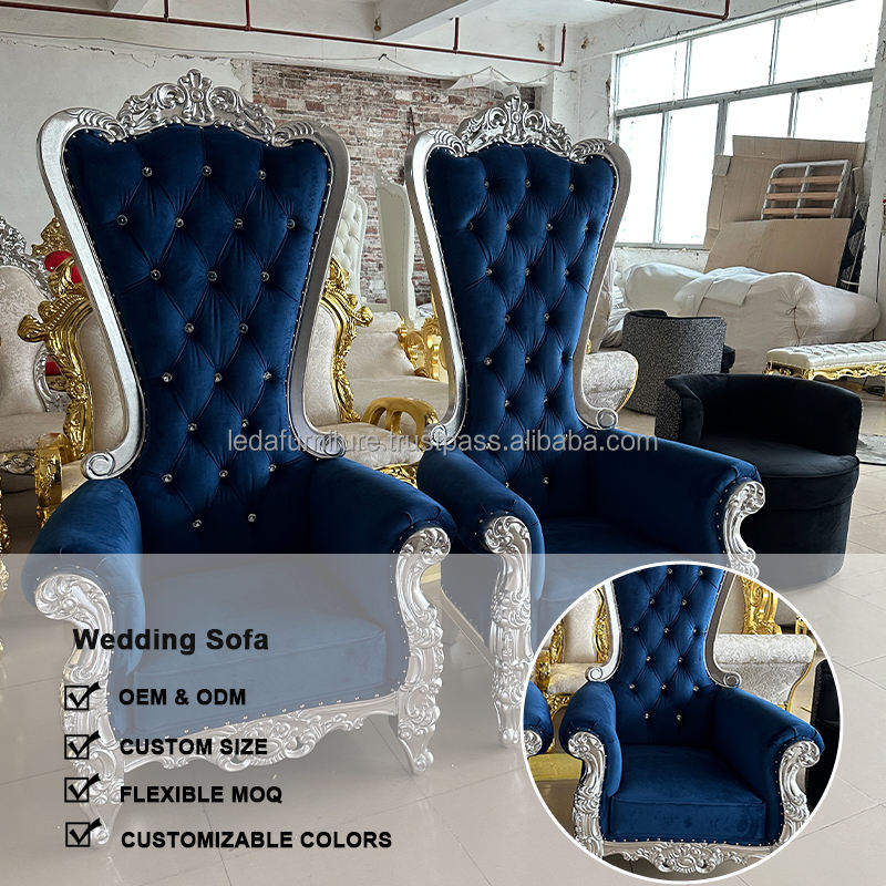 LEDA Wholesale High-End Wedding Event Large Bed Armrests Royal Blue Modern Throne-Style Chair for Hotel Apartment Hospital Use