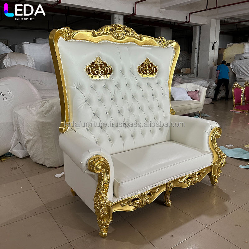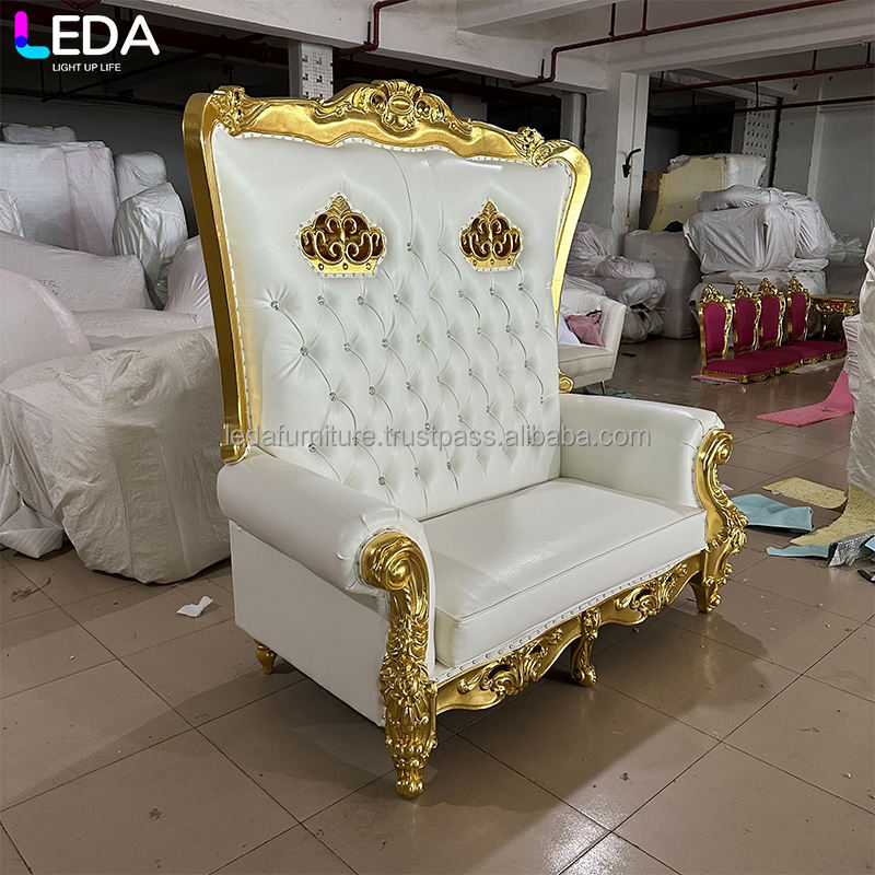 LEDA Wholesale luxury king chairs for hotels, wedding king chairs in gold and white, birthday banquets with king chairs