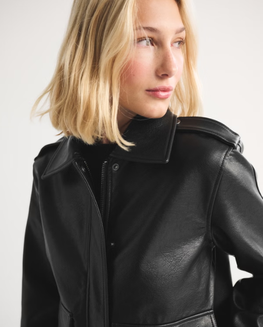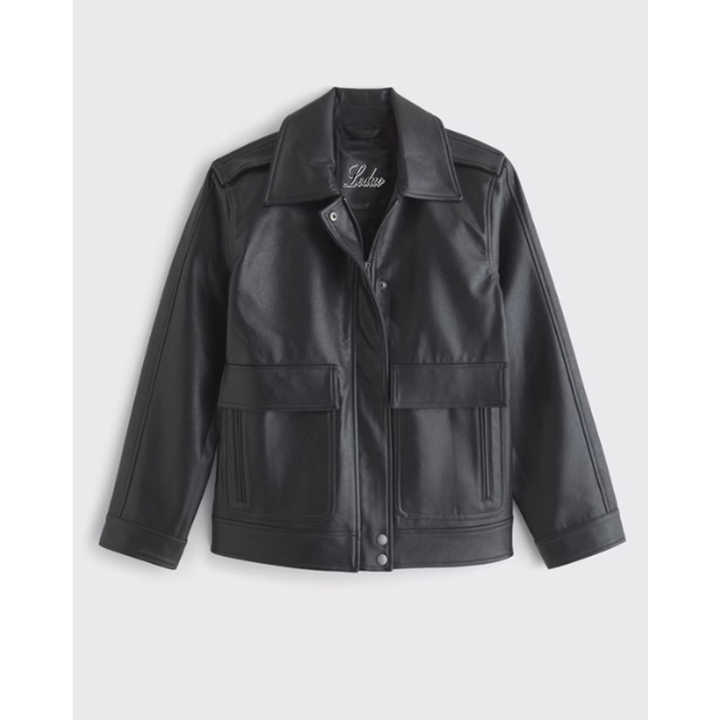 LEDUO Solid Casual Spring Straight Cut PU Leather Breathable Black Jacket for Women