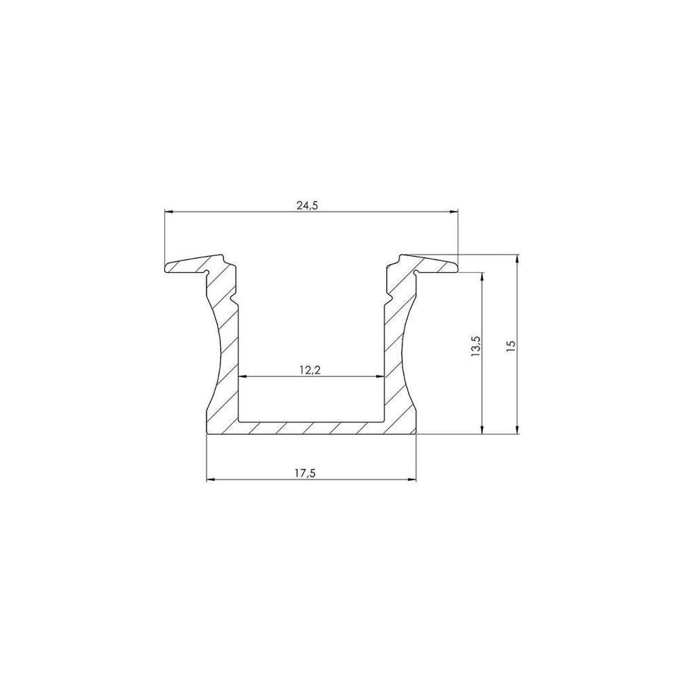 LEDsON RECESSED SLIMLINE 15 mm - ANODIZED IN SILVER - ALUMINIUM LED PROFILE - 2 m