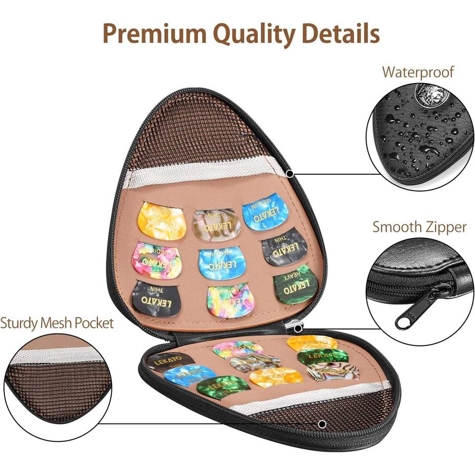 LEKATO 20pcs PU Leather Guitar Pick Holder Case with Lanyard Mesh Pocket for Kids' Plectrums Picks