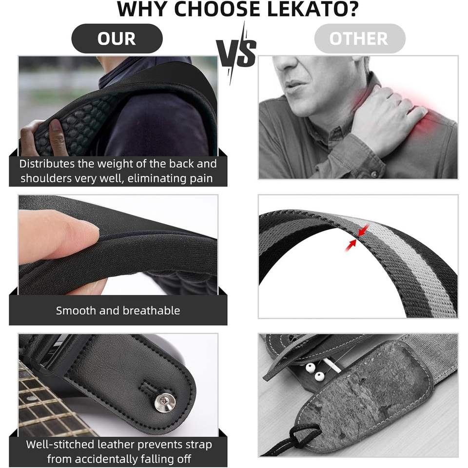 LEKATO 3.5\" Wide Padded Neoprene Guitar Strap with 3D Sponge for Electric Bass Guitar Electric Guitar Accessories