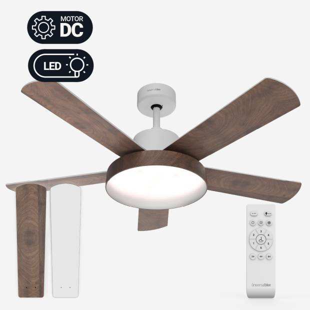 UNIVERSALBLUE LEVANTE 4048W Modern Silent Ceiling Fan LED Light 122cm Wood Blade Remote Control Dimmable DC Motor Bladeless