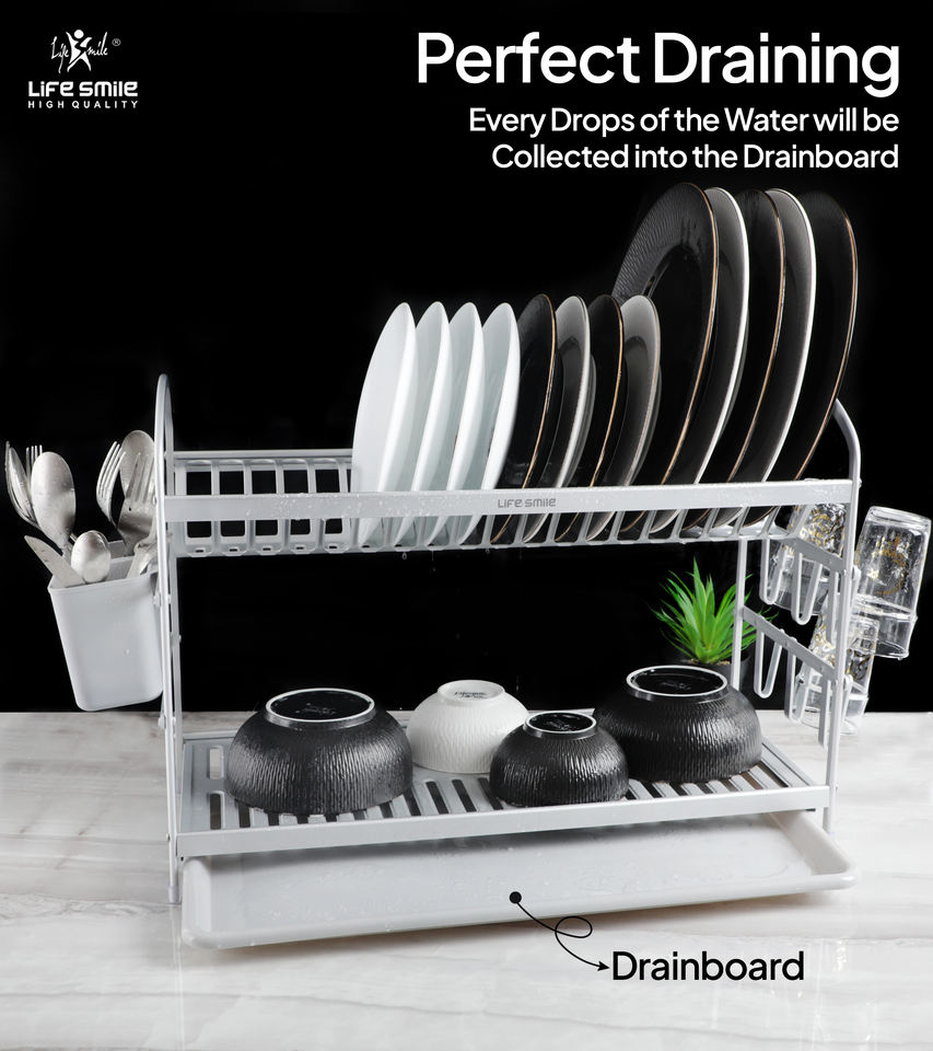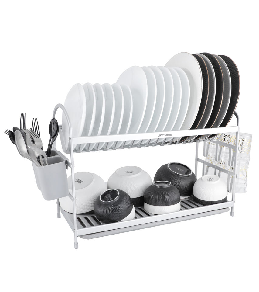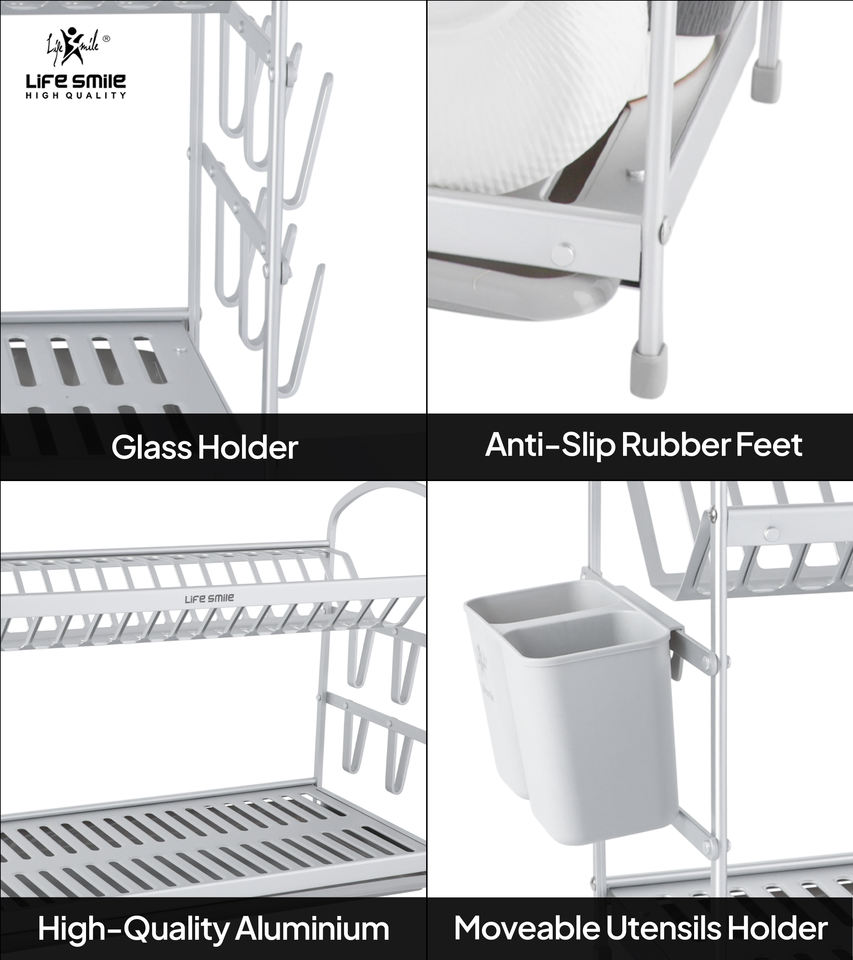 LIFE SMILE Double Tier Dish and Bowl Drying Rack Kitchen Plate Organizer High Quality Aluminum Modern Luxury Easy Assembly