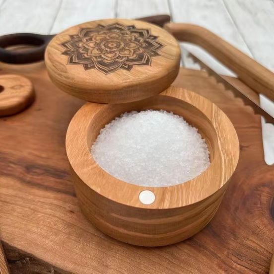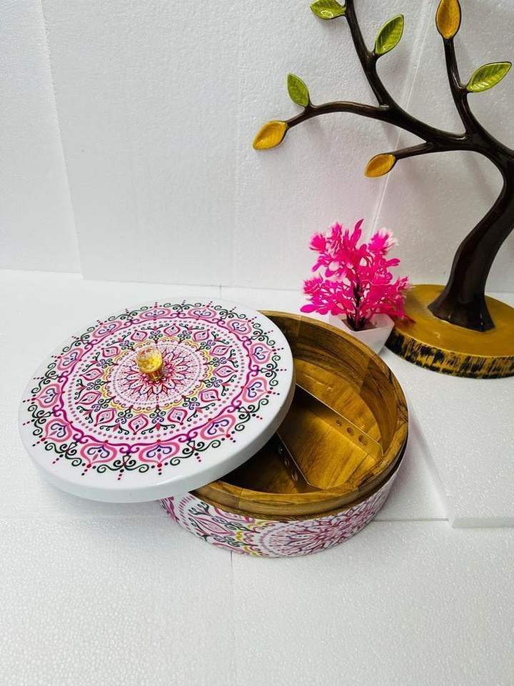LIFESPAN NATURAL WOODEN Premium Printed Home Wooden Tabletop Spice Box With Separate Compartments for Spices and Dry Fruit