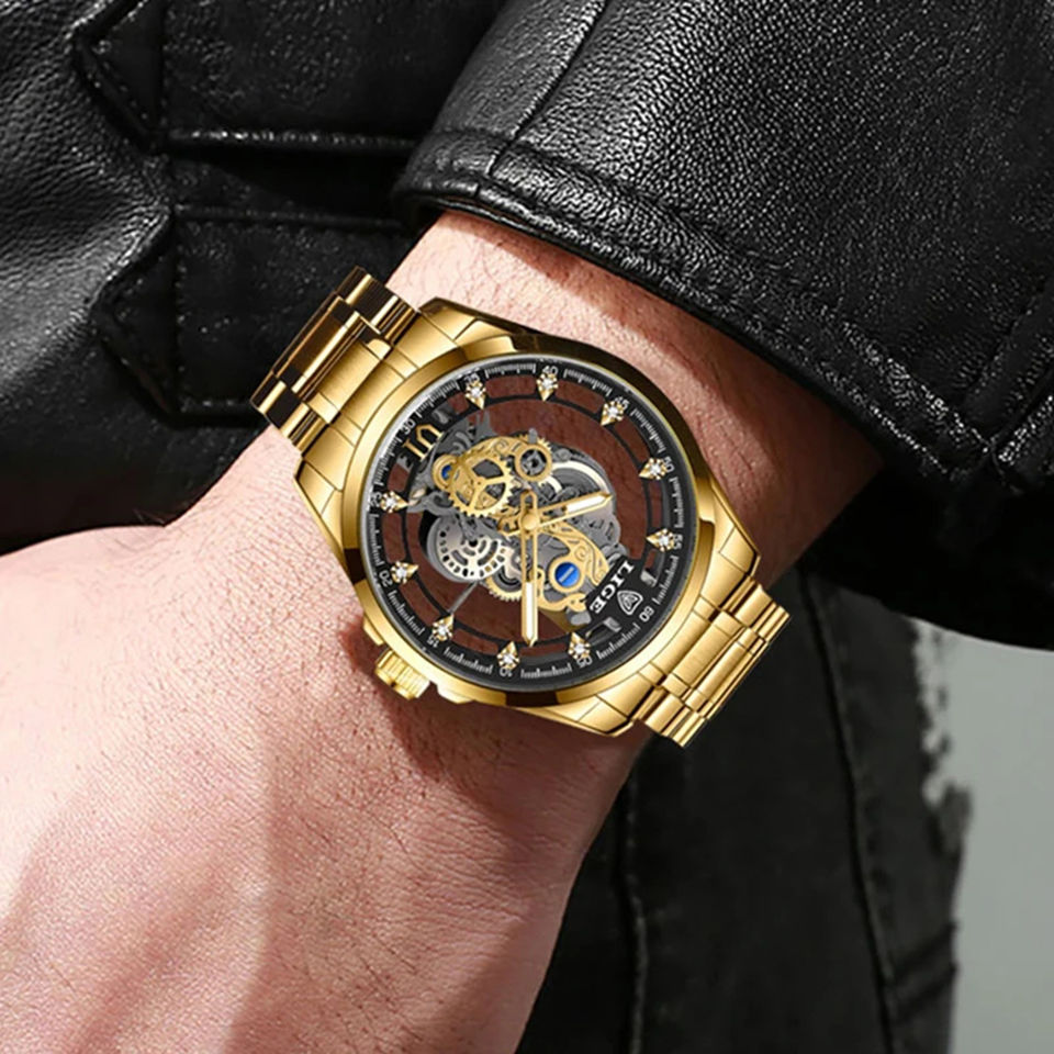 LIGE 8997 Hollow Luxury Business Male Quartz Wristwatches Top Brand Waterproof Gold Sport Watch Luminous Clock Relogio Masculino