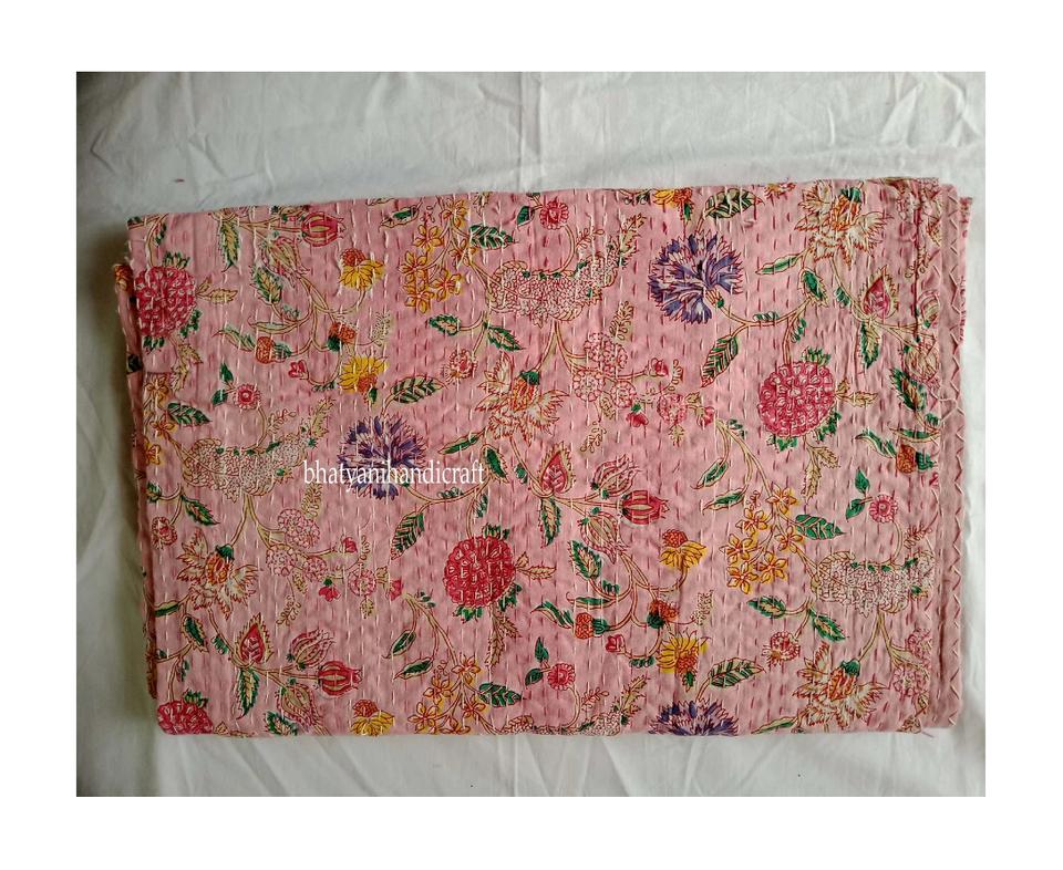 LIGHT BLUE Wholesale Kantha Quilt Indian Kantha Bedspread Throw Cotton Blanket Bohemian Reversible Blanket Queen Size