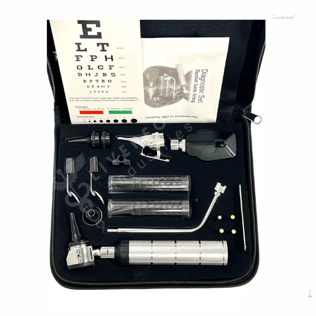 LIVER FORT Premium Quality Veterinary Manual Metal Otoscope Ophthalmoscope Diagnostic Kit ENT Set Stainless Steel Surgical