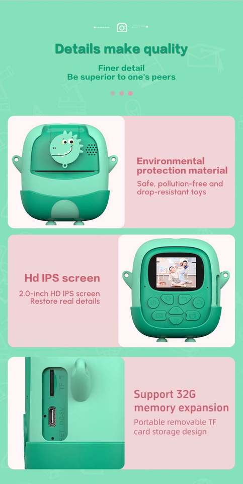 LKL 2.0 Inch IPS HD Screen Instant Print Camera for Kids, Multifunctional Portable Mini Print Camera