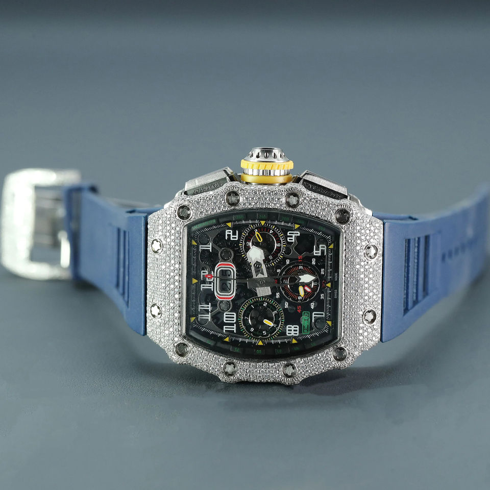 LL VVS Moissanite Diamond Square Antique Fully Iced Quartz Glass Watch Premium Quality Roman Numeral Scale Display Men Women