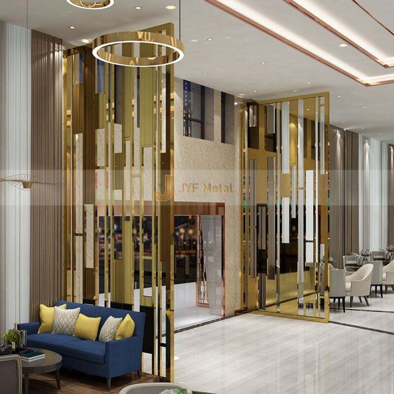 LL334 Factory Customization Waterproof Translucent Gold Color 304 Stainless Steel Wall Divider Panel Living Room Partition