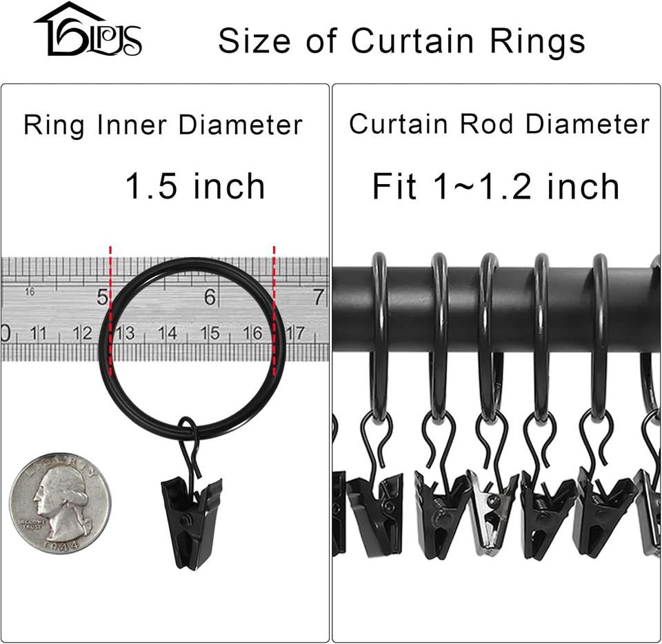 LLPJS Pack Metal Curtain Rings With Clips Curtain Clip Rings Hooks For Hanging Drapery Drapes Bows Curtain Rod Rings Inch Interi
