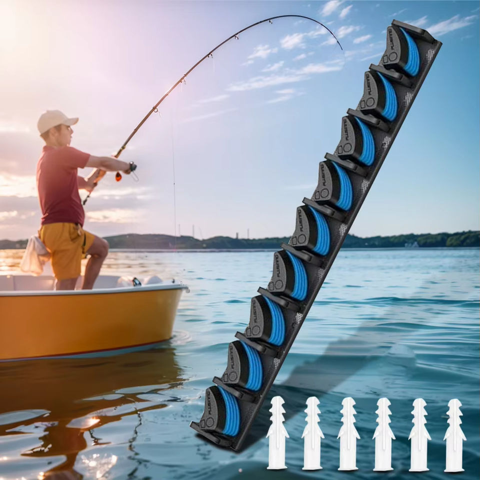 LM Light Weight ABS Material Fishing Poles Rack Wall Mounted Fishing Rod Holder Vertical Support 9 Rod Rack for Garage Storage