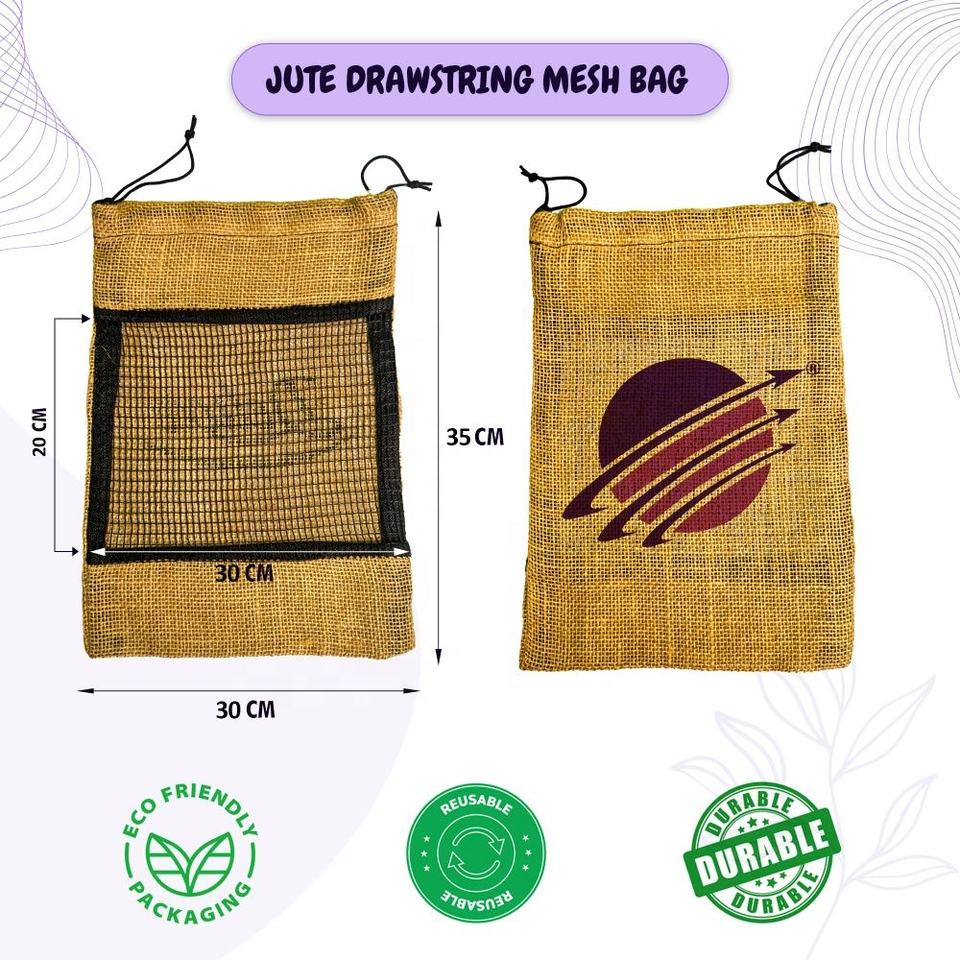 jute mesh drawstring bag