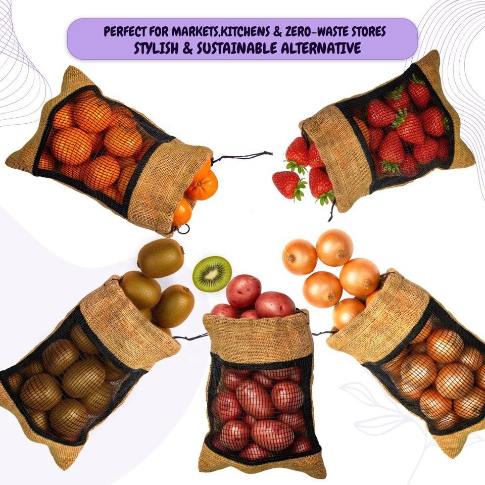 LMC Premium Jute Mesh Drawstring Bag 35x30cm Reusable Breathable Eco-Friendly Biodegradable Food Grade Strong Stitch Durable