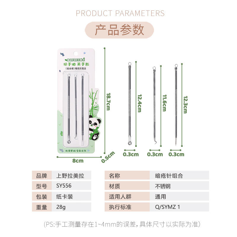 LMLTOP Acne Needle Set 3Pcs Stainless Steel Double-ended Blackhead Remover Face Extraction Tool SY556