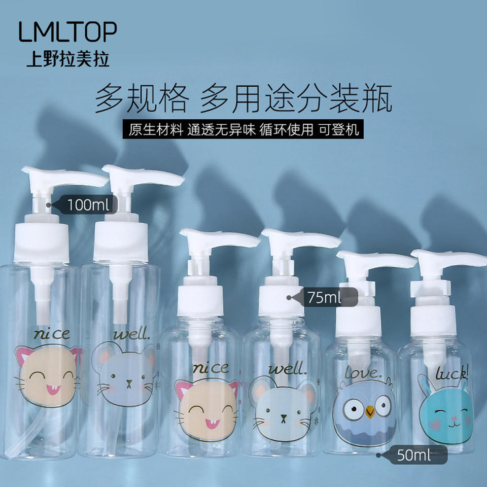 LMLTOP Cartoon Pump Bottles 50ml 75ml 100ml PET Travel Lotion Dispenser For Cosmetic Packaging