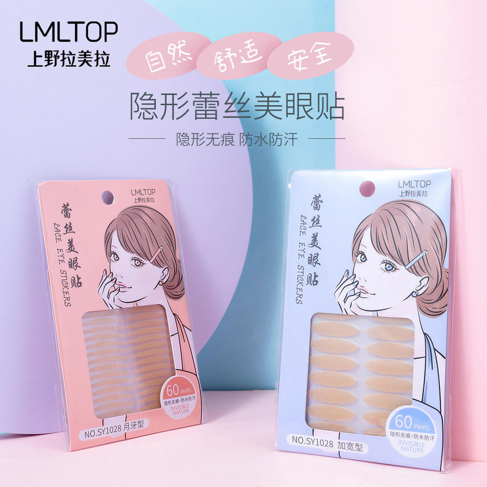 LMLTOP Double Eyelid Tape 60 Pair Lace Invisible Natural Crescent Shape Eyelid Tool for Women
