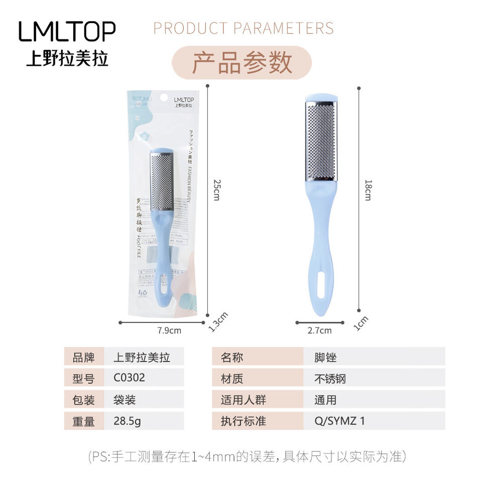 LMLTOP Double Sided Foot File Stainless Steel Exfoliator For Callus Removal Pink And Blue C0302