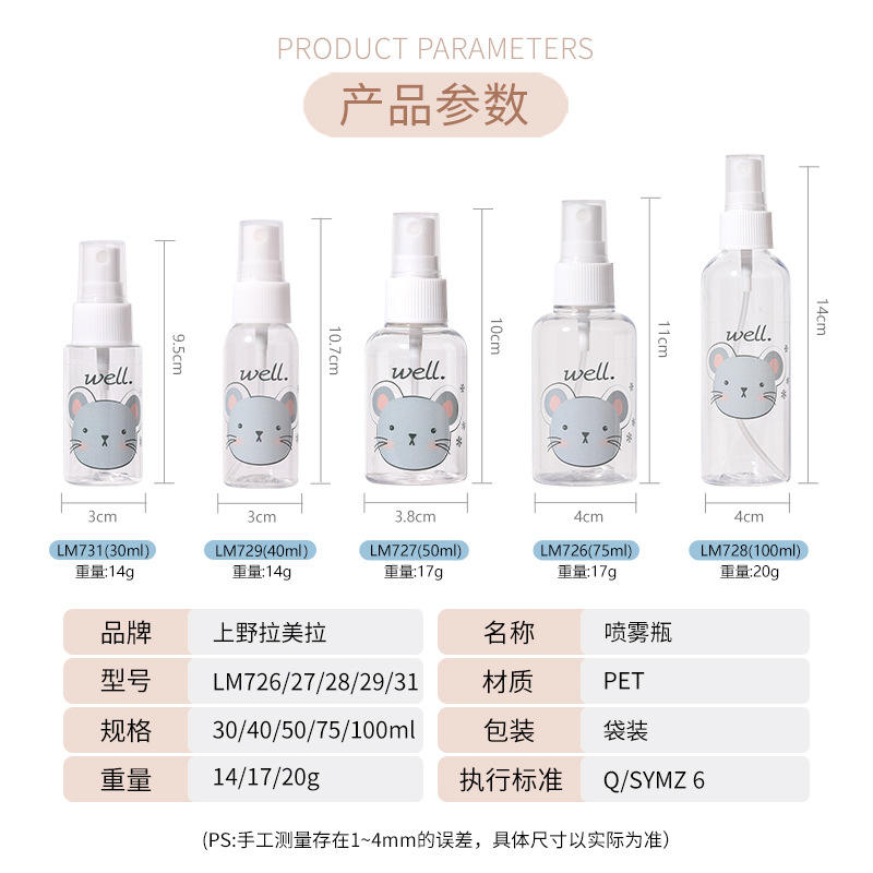 LMLTOP Facial Mist Sprayer 120Ml Nano Spray Pump Travel Cosmetic Bottle Refillable With Cartoon Design