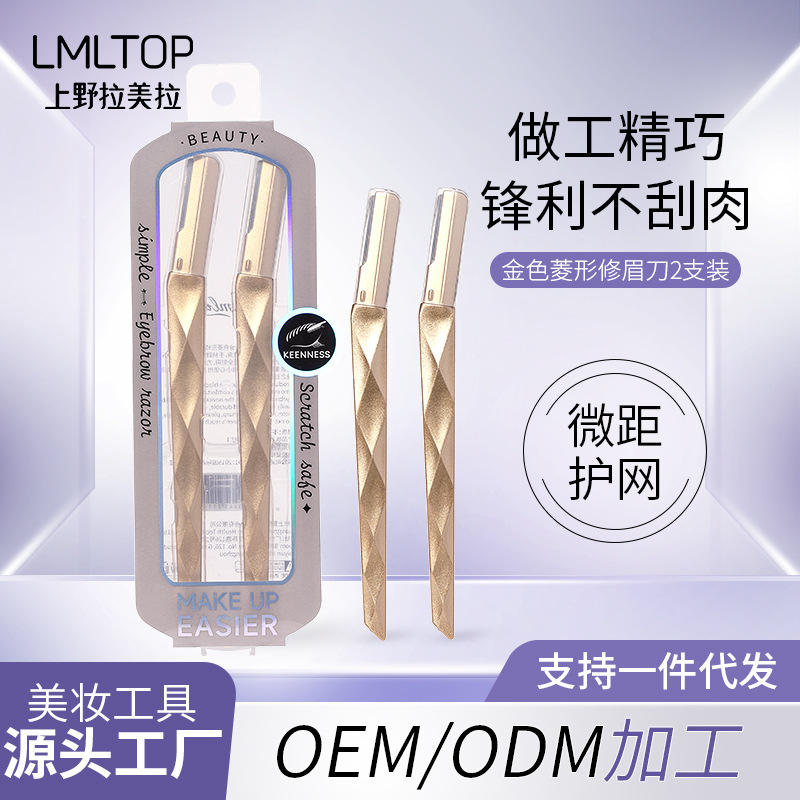 LMLTOP Gold Eyebrow Razor Two-Pack Stainless Steel Single Blade For Beginners Makeup Tool