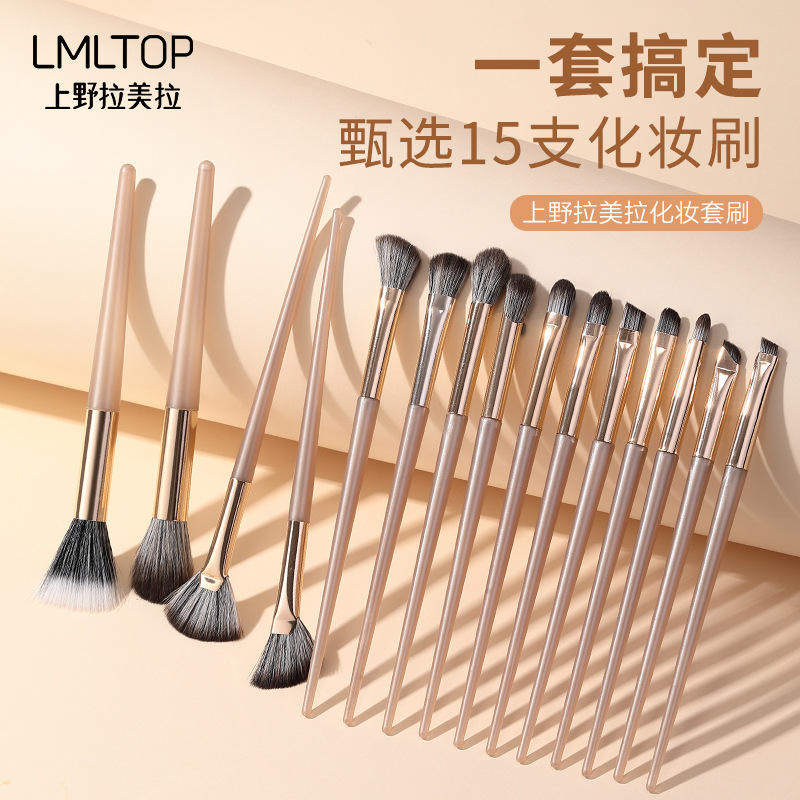 LMLTOP Makeup Brush Set 15pcs Synthetic Hair Long Handle Eyeshadow Blush Powder Brushes Wooden Handle CXT046