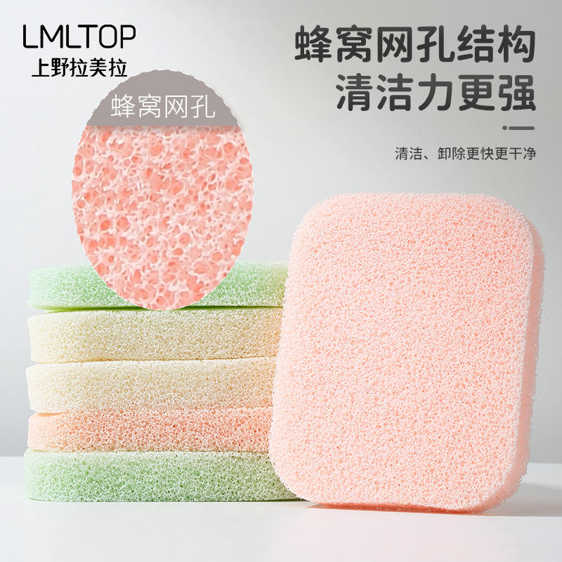 LMLTOP Soft Sponge Facial Cleansing Pad Large Size For General Use With Honeycomb Mesh Design In Pink Green Rice Coffee Colors
