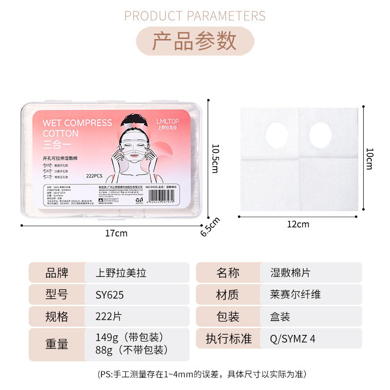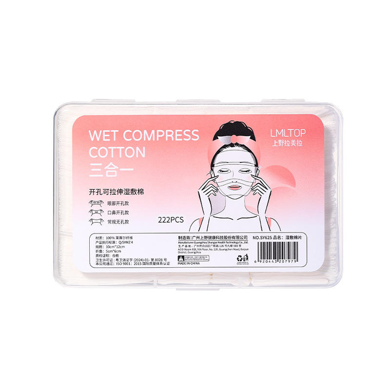 LMLTOP Wet Compress Cotton Pads 222Pcs 3-In-1 Stretchable With Eye Nose Openings For Face Care